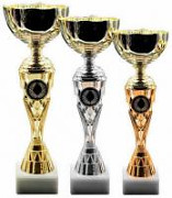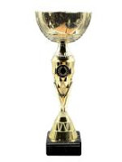 Pohár EKONOMY E0690 s bílým mramorovým podstavcem, možností umístění emblému a štítku. Cena poháru nezahrnuje cenu štítku.