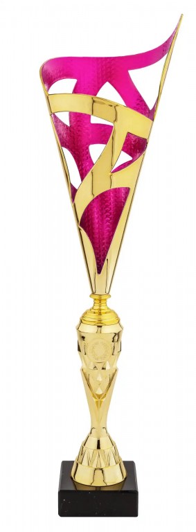 Pohár s plastovým kalichem, plastovou nohou a mramorovým podstavcem.