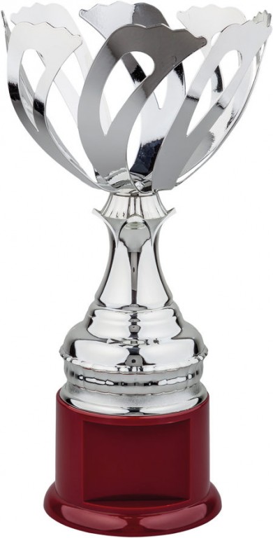 Pohár LUXUS L0208 je menší, ale velmi luxusní trofej, která osloví svým elegantním designem a precizním zpracováním. Tento stříbrný pohár na červeném podstavci se skvěle hodí pro různé příležitosti, jako jsou sportovní události, firemní ocenění nebo kulturní akce. Jeho originální výkroje v kalichu přidávají na atraktivitě a moderním vzhledu.