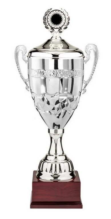 Hledáte výjimečný putovní pohár pro prestižní sportovní turnaj nebo ocenění? LUXUS PT2022 je dokonalou volbou! Tento majestátní pohár s výškou 72 cm a průměrem 24 cm vyniká svým luxusním stříbrným designem a masivním dřevěným podstavcem. Díky možnosti umístění emblému a personalizovaného štítku (doporučujeme kovový) se skvěle hodí pro dlouhodobé putovní ocenění.