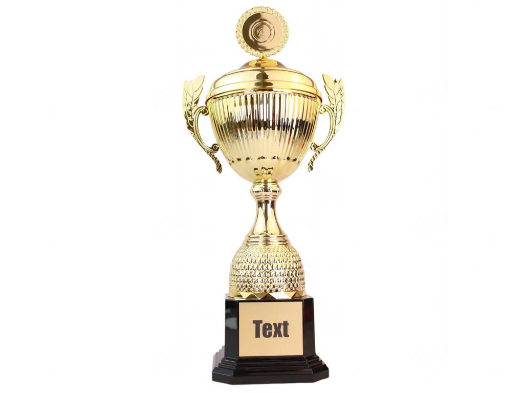 Moderní a elegantní pohár vyniká svou lehkou, přesto pevnou konstrukcí a působivým designem, který se skvěle hodí pro jakoukoli slavnostní příležitost. Je vyroben z kvalitního, odolného plastu a doplněn kovovým kalichem s poklicí. Na podstavec lze přidat štítek s vlastním textem a emblém – tyto doplňky nejsou zahrnuty v ceně.