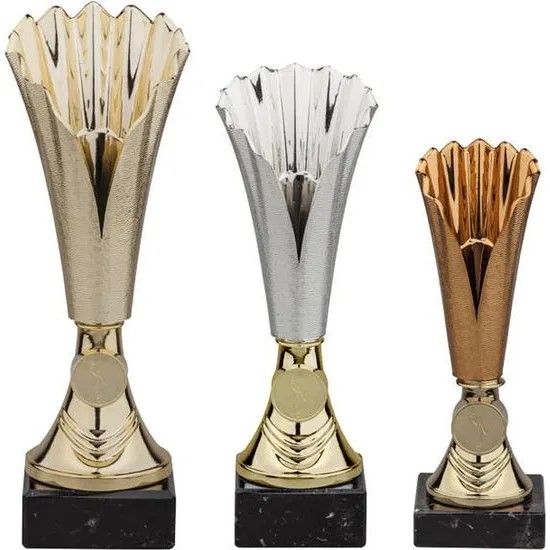 Pohár SUPER EKONOMY SE0104Hledáte pro své vítěze něco vizuálně zajímavého? Sada SUPER EKONOMY SE0104 zaujme na první pohled svým netradičně tvarovaným kalichem, který se elegantně rozšiřuje a dodává trofeji moderní šmrnc. Kombinace barevného těla a stabilního černého kamenného podstavce vytváří profesionální dojem vhodný pro jakýkoliv ceremoniál.