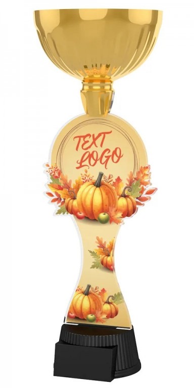 Podzimní trofej s možností umístění vlastního loga či textu. Akrylátová trofej s UV potiskem. V ceně trofeje není zahrnuta cena štítku. Akrylátový motiv tloušťka 0.6 cm. Podstavec černý plastový. Oboustranný tisk.