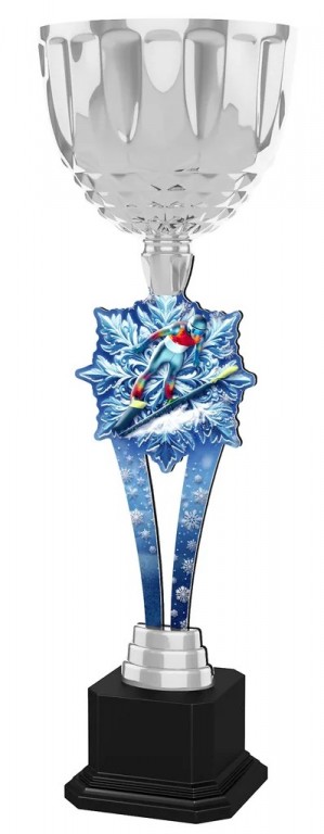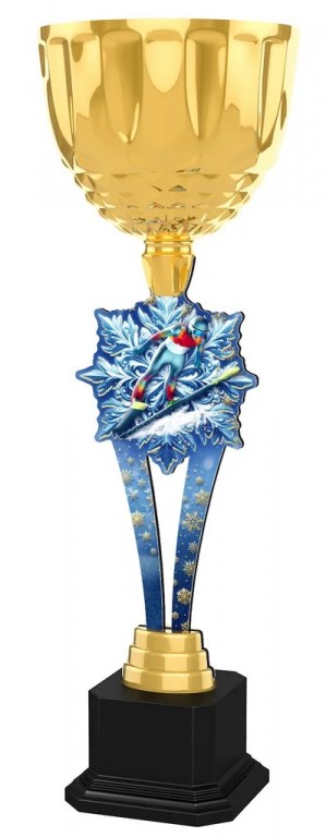 Trofej ACUPW2025M09 | Skoky na lyžíchTahle trofej patří mezi kousky, které si získají pozornost ještě dřív, než vůbec začneš předávat ceny. Nahoře dominuje kovový kalich s lesklým povrchem a detailním reliéfem, který dodává celé trofeji opravdu luxusní vzhled. Hlavním vizuálním prvkem je kovový střed s ostrým a barevně sytým 2D tiskem – moderní, výrazný a okamžitě zapamatovatelný.